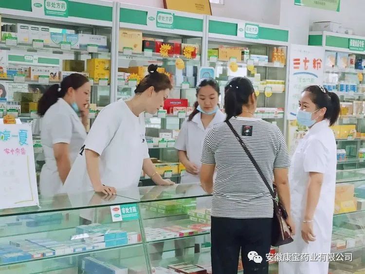 為進一步提高連鎖藥房的藥學服務水平,促進合理用藥,自7月9日起,康寶大藥房利用休息時間分批組織各門店人員到泉山店觀摩學習、交流經驗??祵毸帢I(yè)董事長朱興林對此次活動十分重視,他要求各門店人員通過現(xiàn)場觀摩,一定要把泉山店的好辦法、好服務、好效果學為己用,進一步增